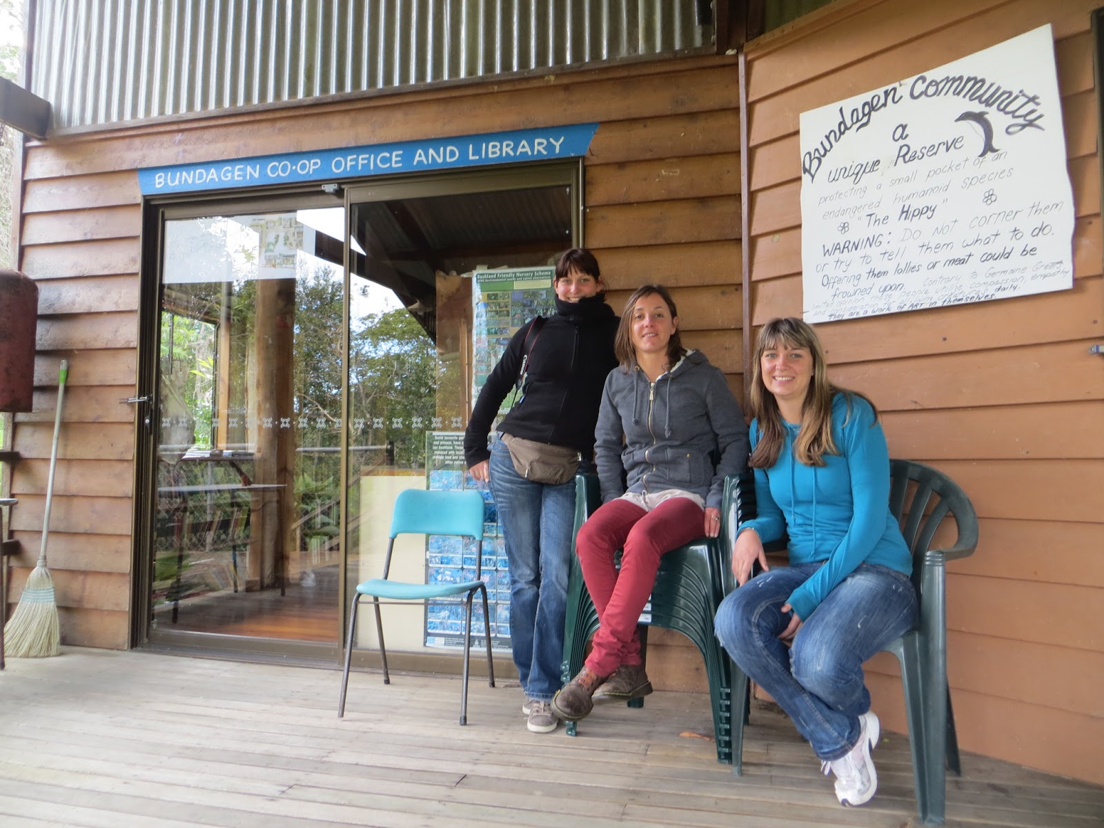 | Sina, Arianne und Madline vor dem Gemeinschaftshaus |