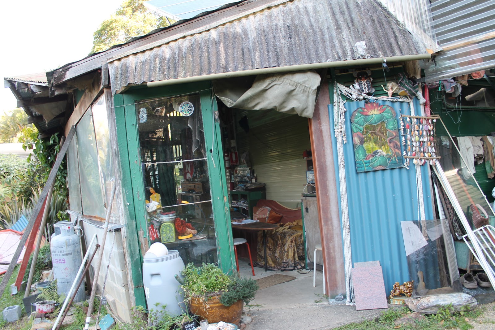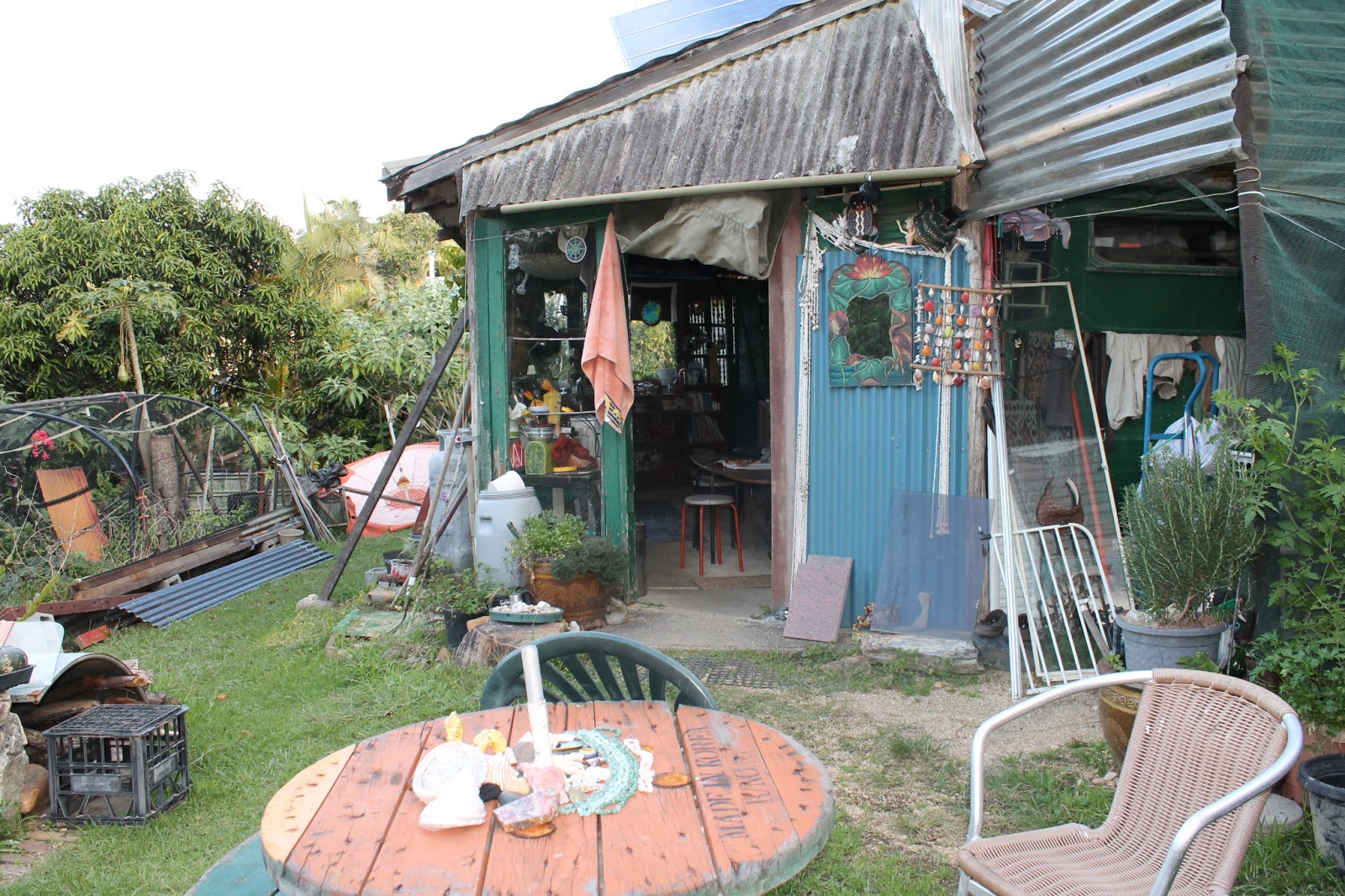 Gestern Abend saßen wir mit einigen Leuten am Lagerfeuer, es war wahnsinnig kalt. Wir sind halt mitten im Busch und rund um uns herum sind viele Bäume. Alle Leute leben hier in selbstgebastelten Hütten und ich muss sagen, einige sind richtig kreativ. Andere geben sich wohl mit weniger zufrieden. Ich muss ehrlich zugeben, die meisten Leute hier sind wohl zufriedener als die meisten Menschen in Städten und „normalen“ Wohngemeinschaften. Aber ob das wohl was für mich ist. Hmm ich weiß ja nicht.