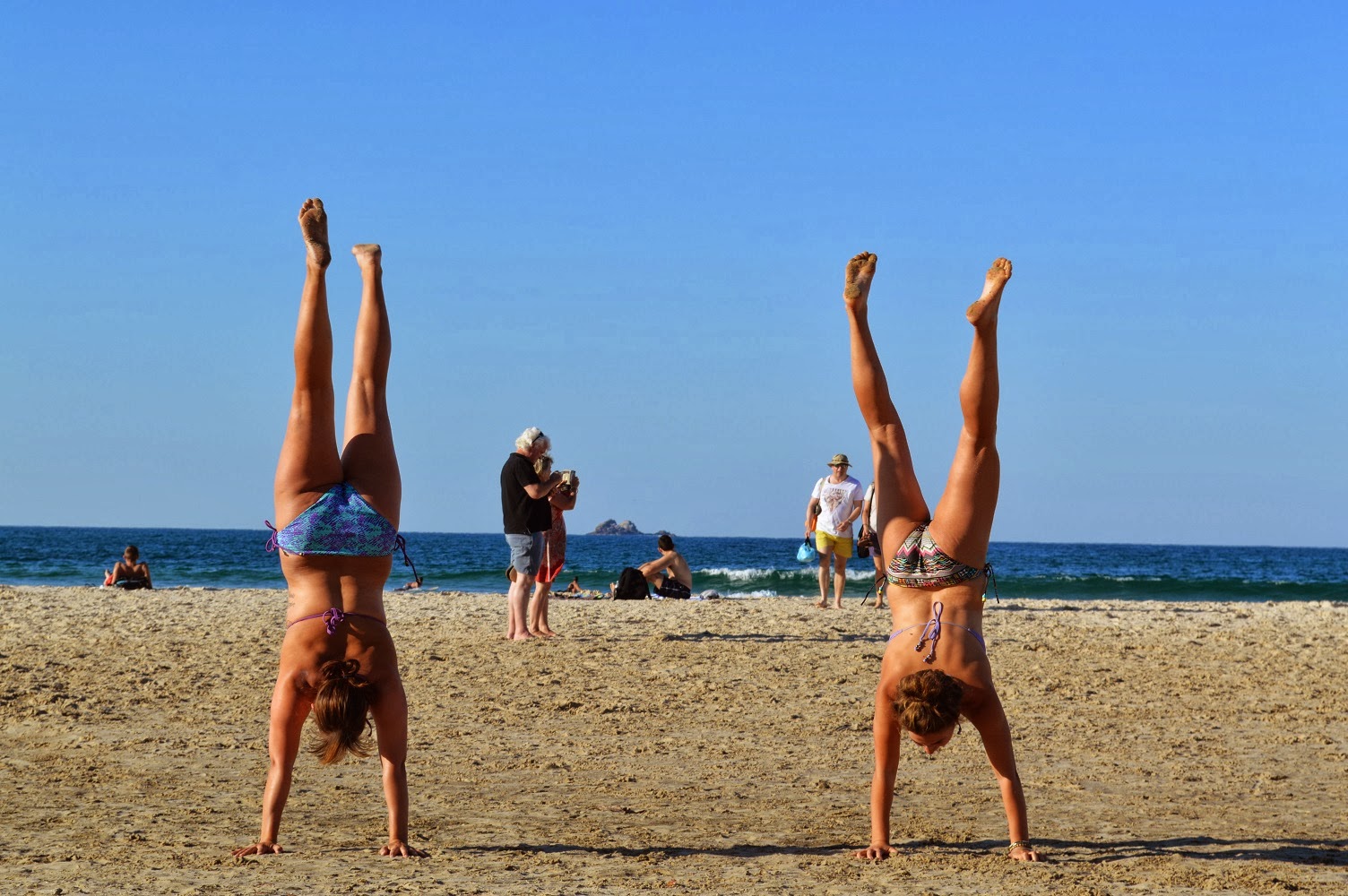 Erstmal ging es an den Strand. Das erste Mal, dass ich auf einem richtigem Board surfte und nicht auf einem Soft-Schul-Surfboard. Und was soll ich sagen! Ich stand! Wuhuuuuu. Ich mag surfen einfach. Wenn ich nicht gerade damit beschäftigt bin, sehr viel Wasser zu schlucken oder den Wellen hinterher zu paddeln oder mir die Arme, Knie oder das Kinn aufzuschürfen, dann funktioniert das Ganze schon recht gut. Ich werde auf jeden Fall dranbleiben! Wir machten Yoga am Strand, Handstand und tollten herum wie die Kinder.